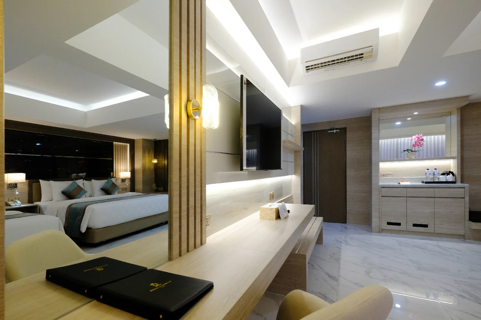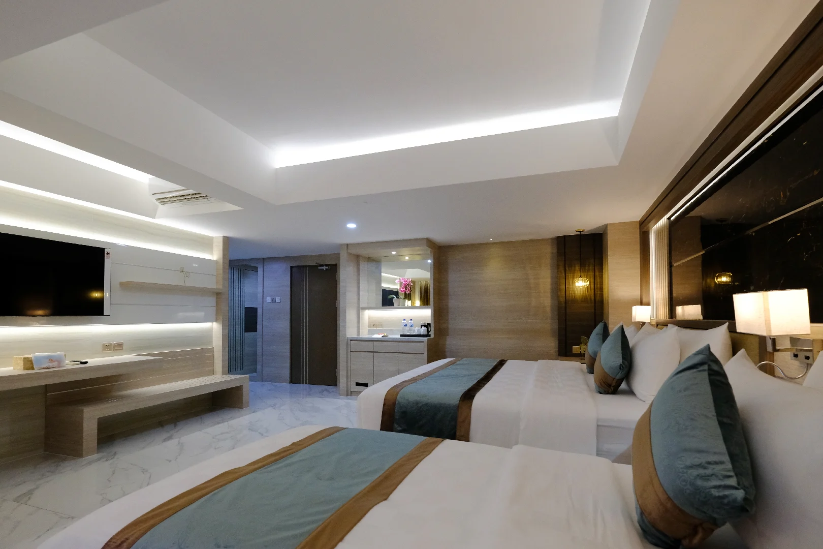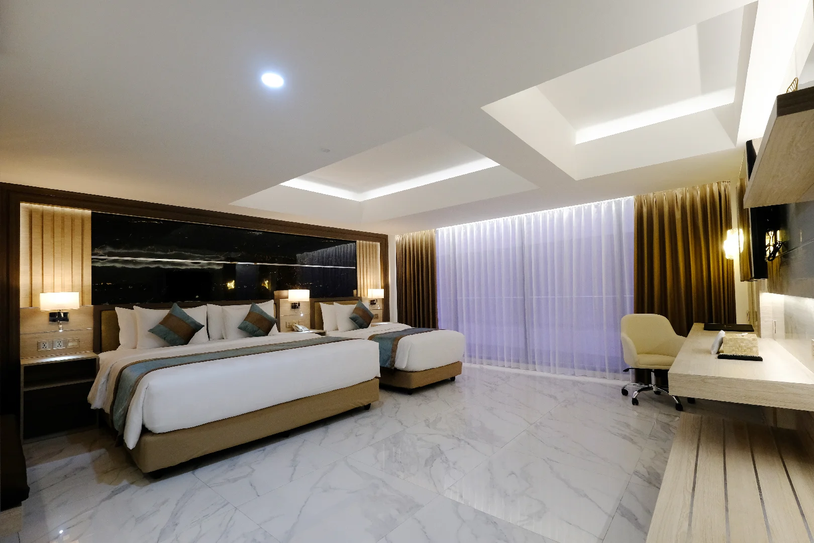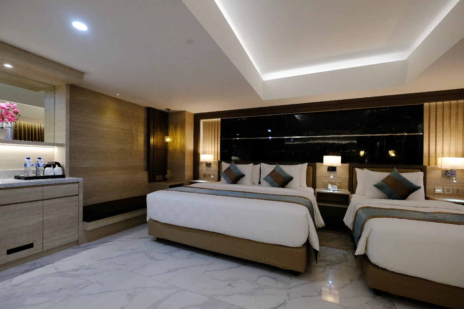 Bed Type : King Size (200×200 cm) and Single Size (100×200 cm each)